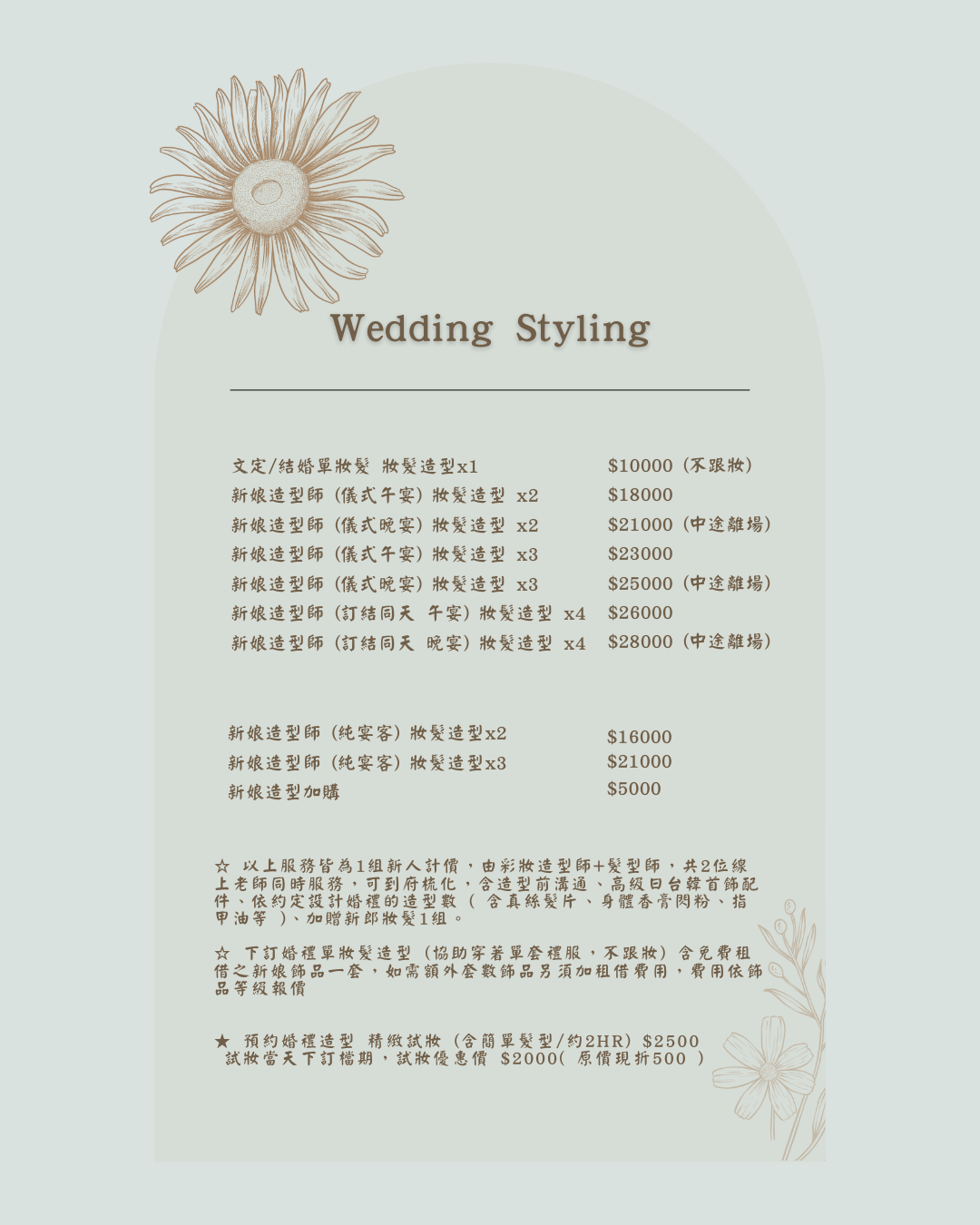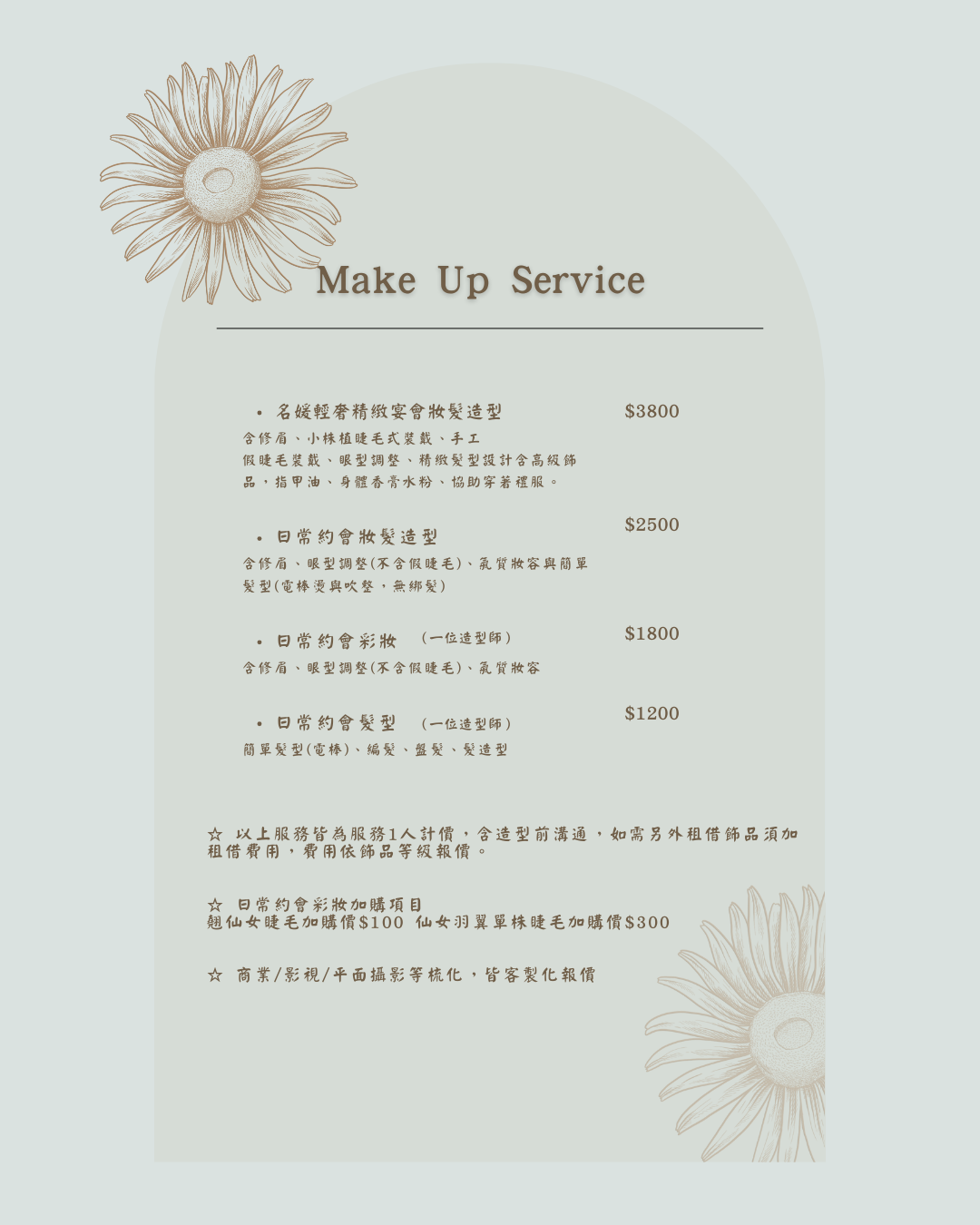 MUA & HAIR|造型價目表